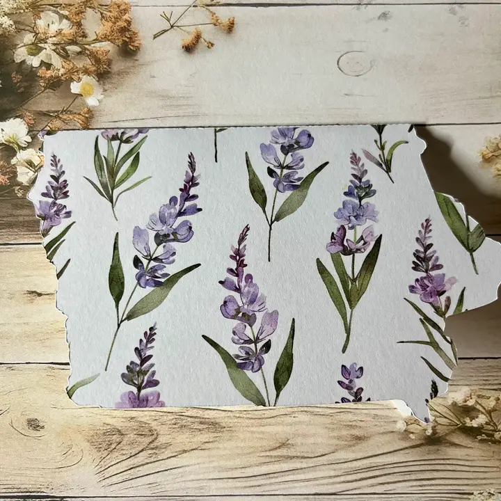 Iowa Shaped Card with lavender flowers single card