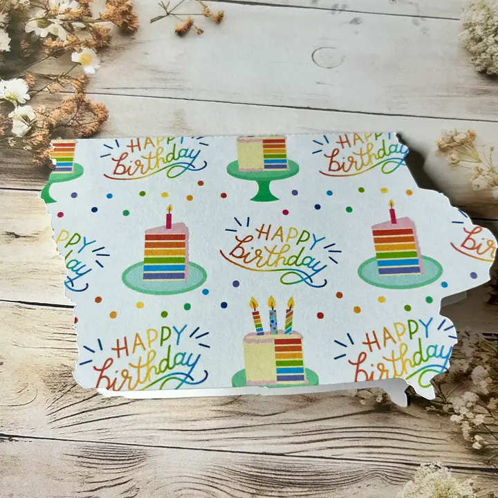 Iowa happy birthday/cake greeting card – single