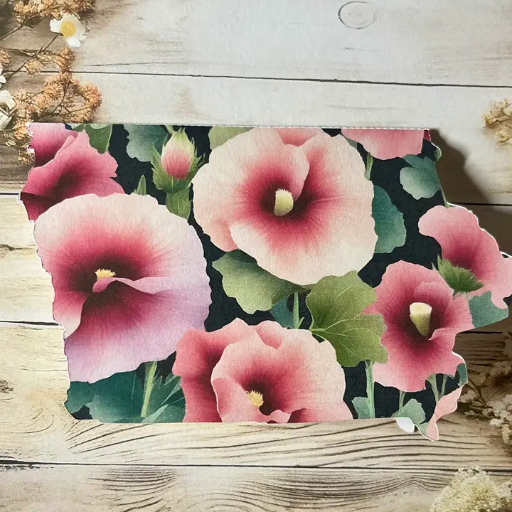 Iowa Shaped Card with hollyhock flowers single card