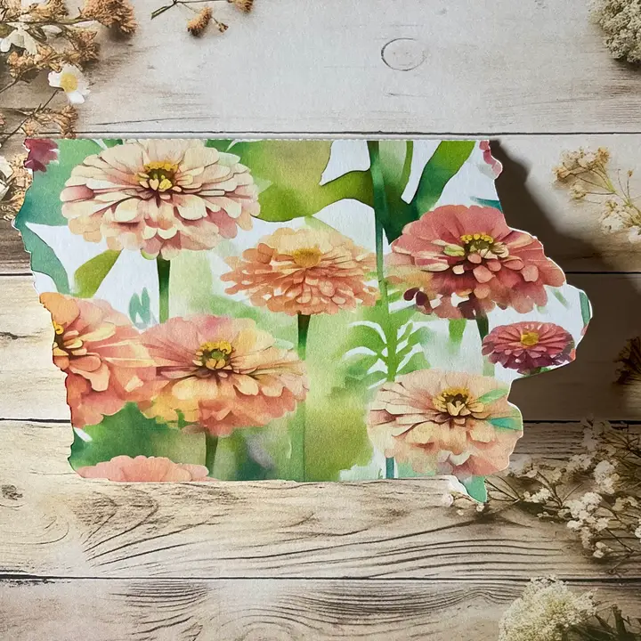 Iowa Shaped Card with zinnia flowers single card