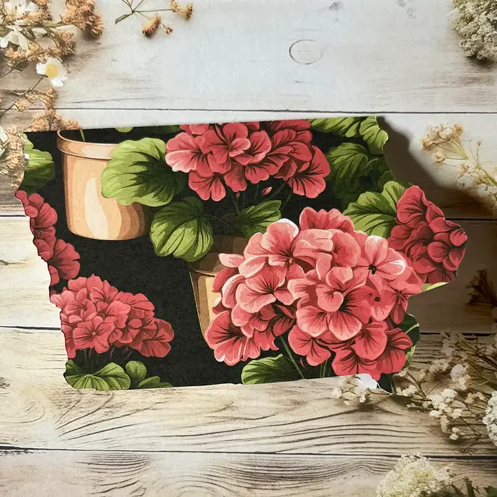 Iowa Shaped Card with geranium flowers single card