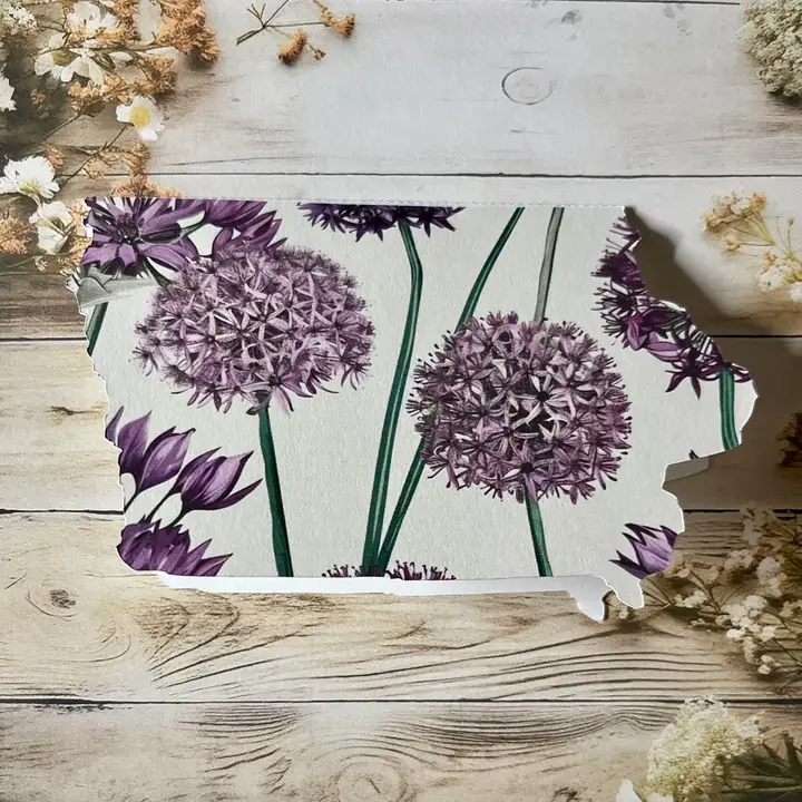 Iowa Shaped Card with allium flowers single card
