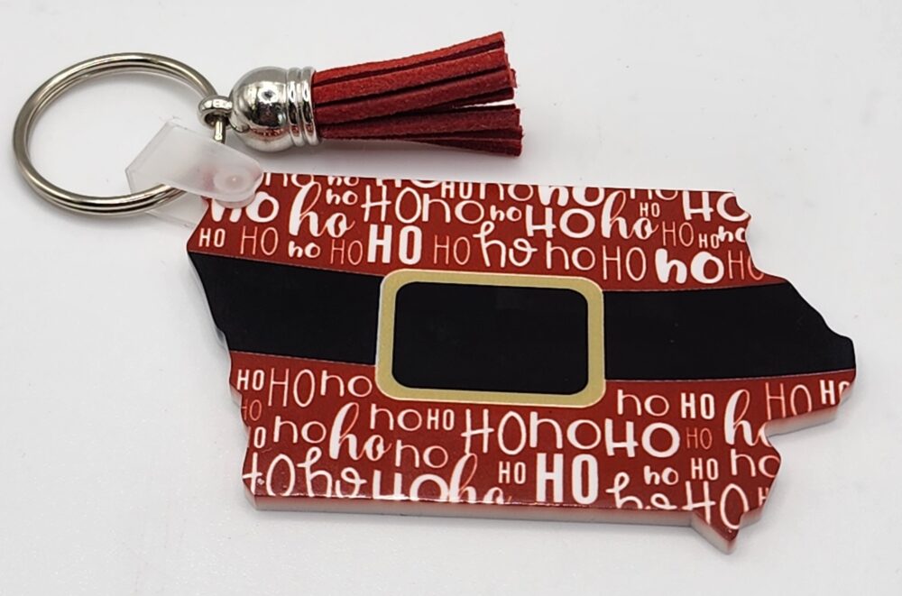 Santa Belt Iowa Keychain Ho Ho Ho Christmas in Iowa Acrylic Gift