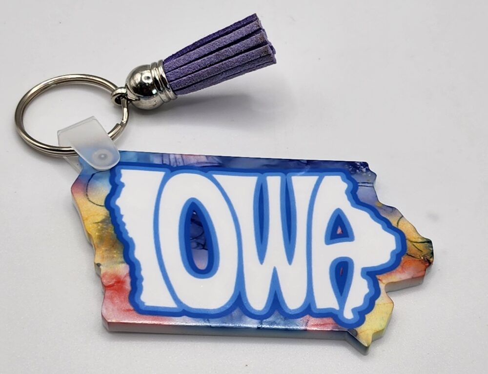 Iowa Keychain Watercolor Design Acrylic Handmade Lightweight