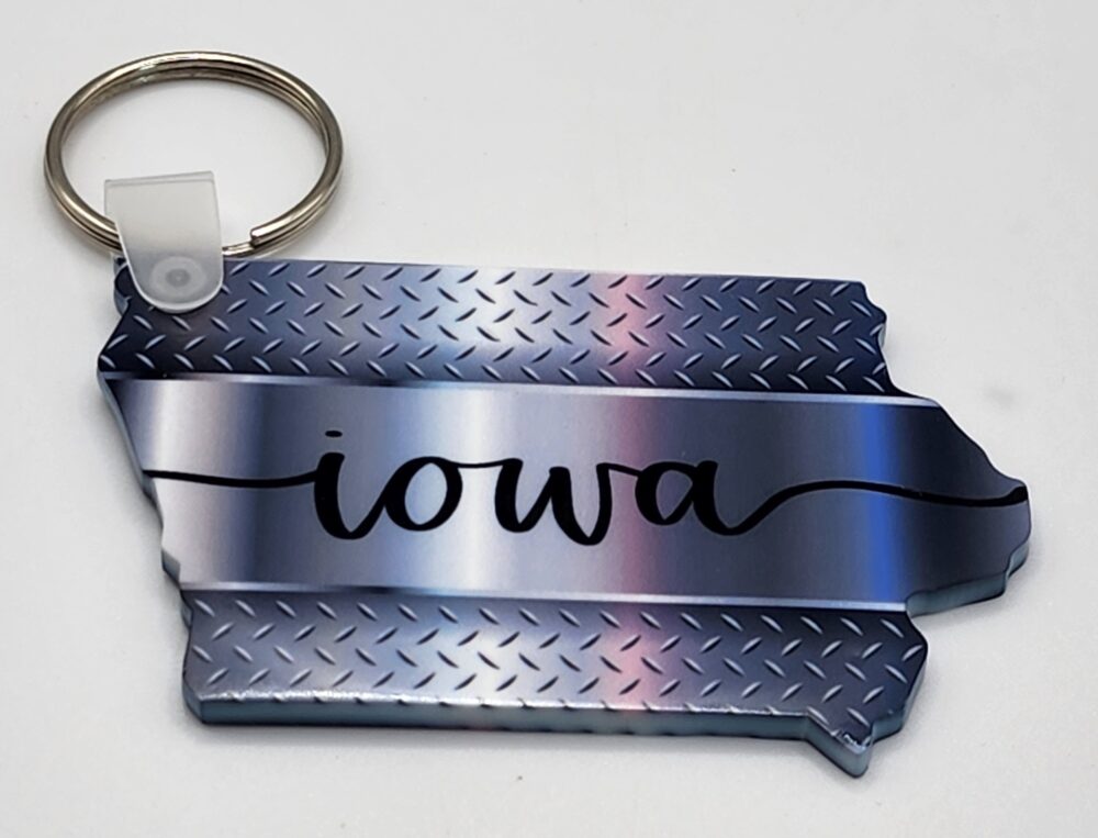 Iowa Keychain Acrylic with Stainless Steel Look Double Sided Handmade