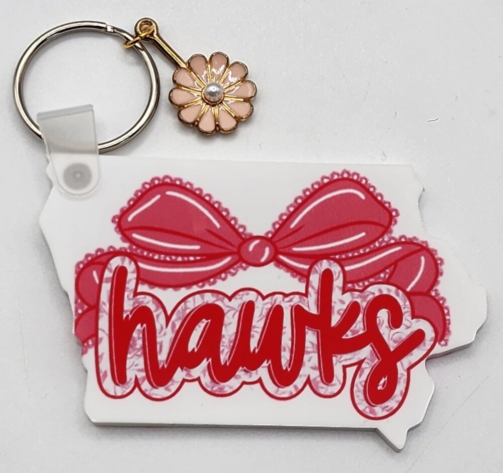 Pink Hawks Iowa Shaped Acrylic Keychain Double Sided Handmade
