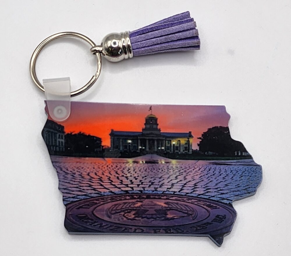 Iowa State Capital at Sunset Acrylic Keychain Handmade Double Sided Design