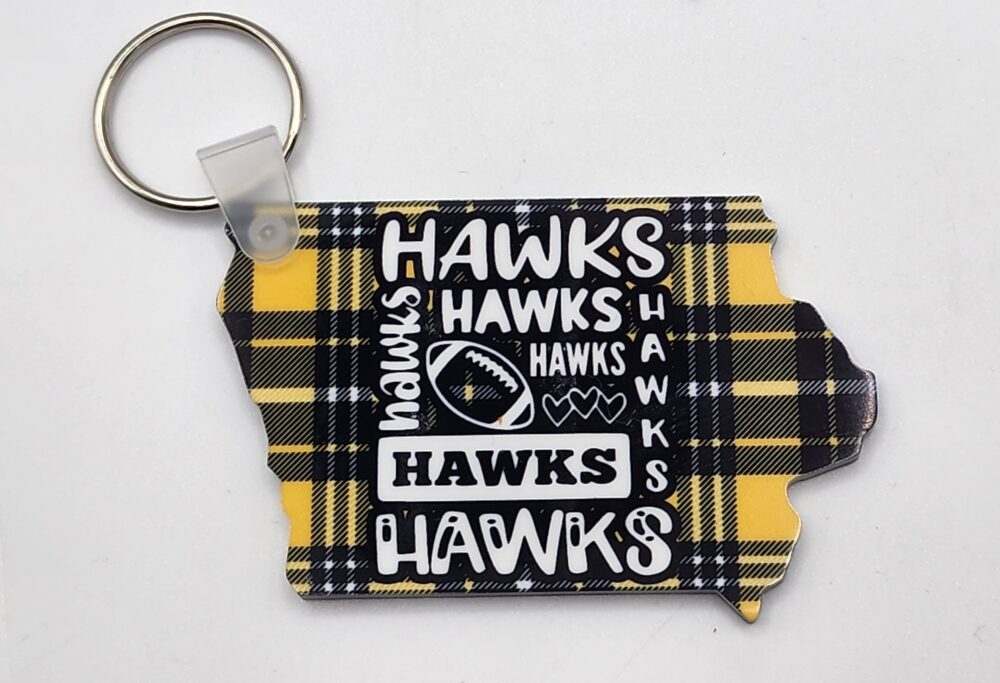 Black and Gold Plaid Iowa Hawks Football Acrylic Keychain