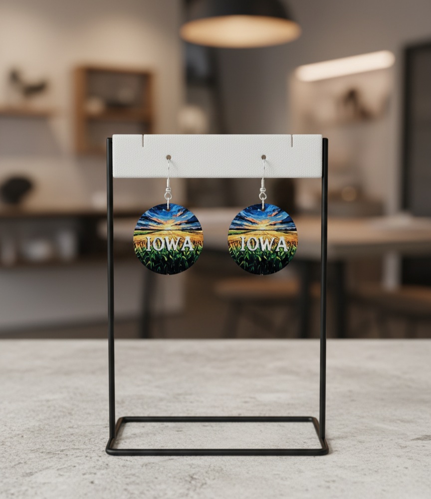 Iowa Wooden Earrings Cornfield at Sunset Painting Design