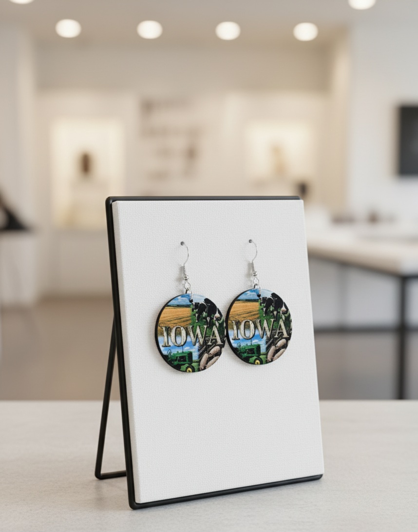 Iowa Wooden Earrings Cows Corn Pigs Tractors