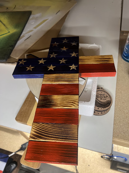 Rustic American Flag Cross Wall Decor | Torch Burned Wooden Patriotic Cross | Handmade in Iowa