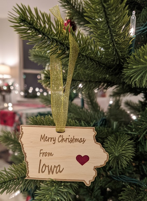 Merry Christmas from Iowa ornament with heart