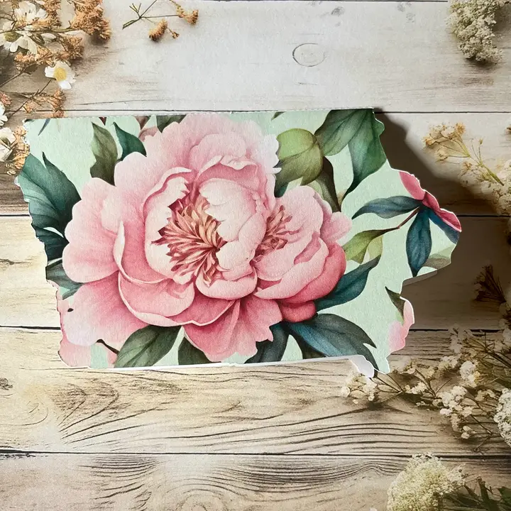 Iowa Shaped Card with peony flower single card