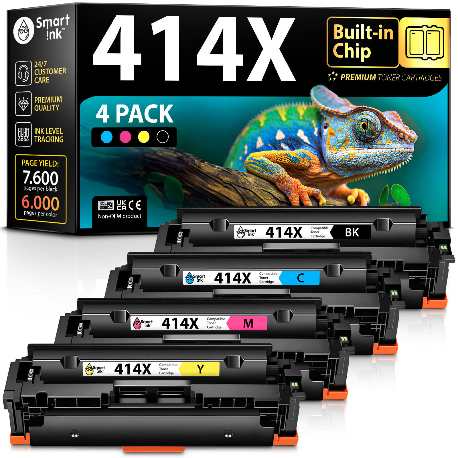 Compatible HP 414X Toner Cartridge Replacement (4 Combo Pack), Smart Ink