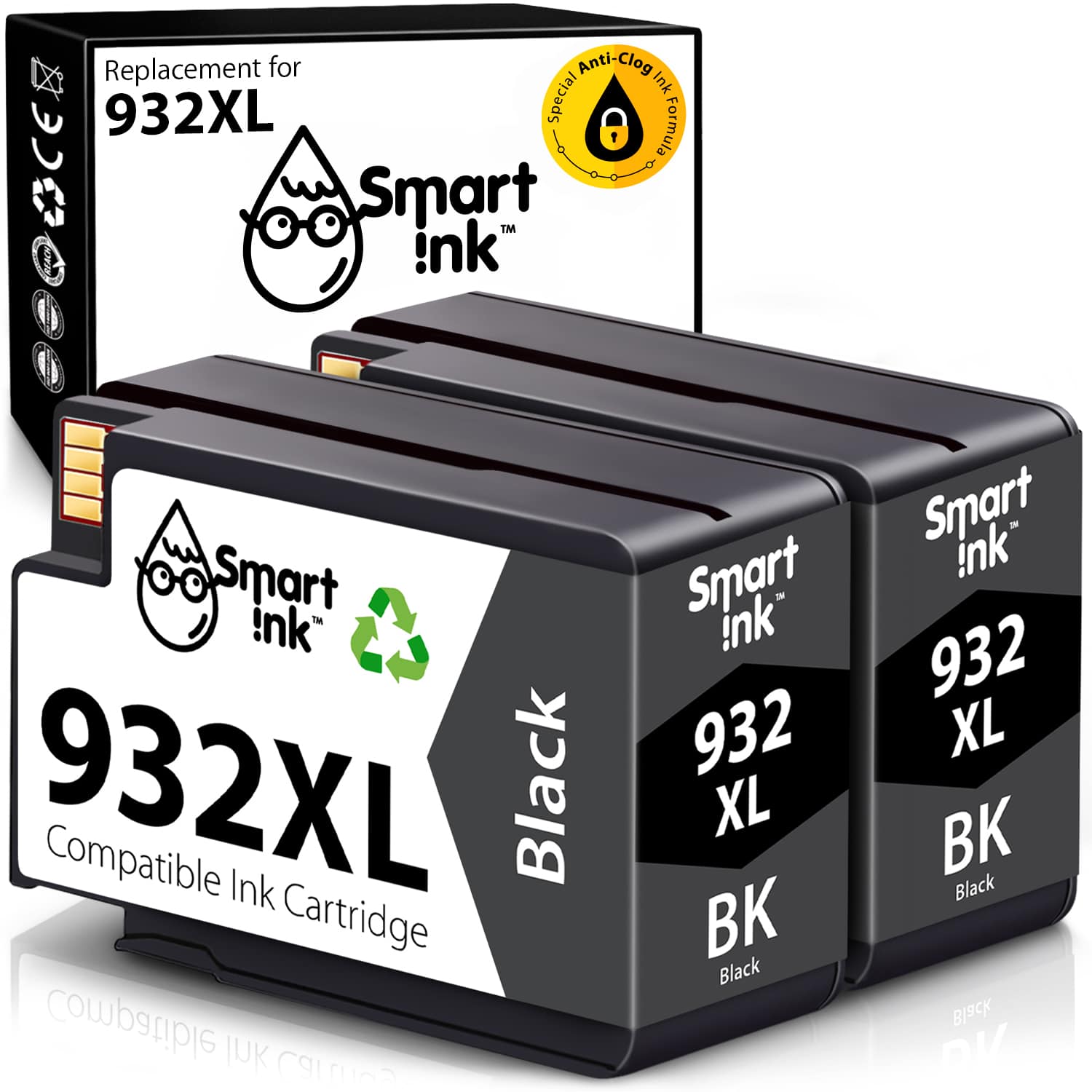 Compatible Ink Cartridge Replacement for HP 932 (2 Black), Smart Ink