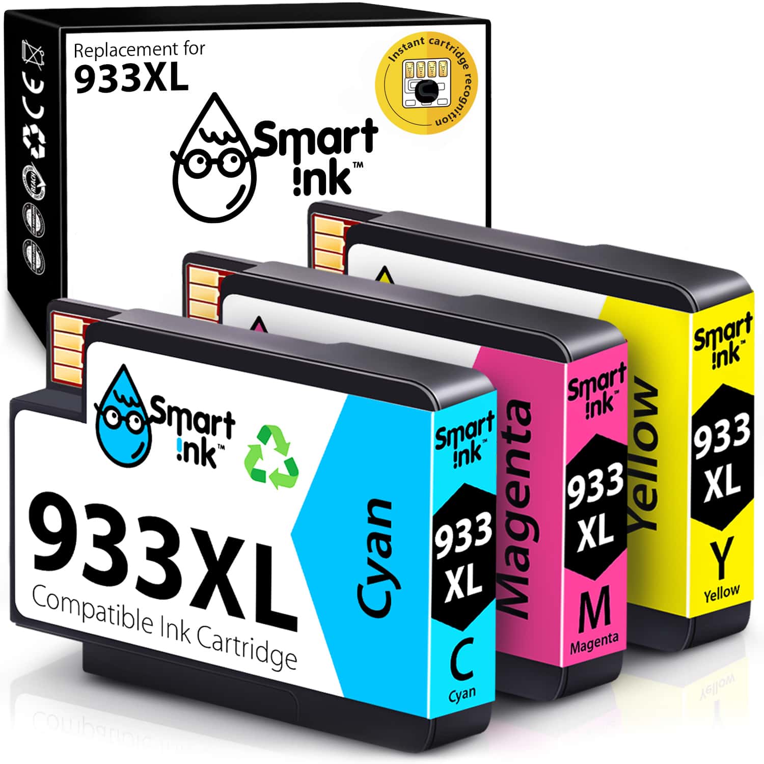 Compatible Ink Cartridge Replacement for HP 932, 933 XL (3 pack), Smart Ink