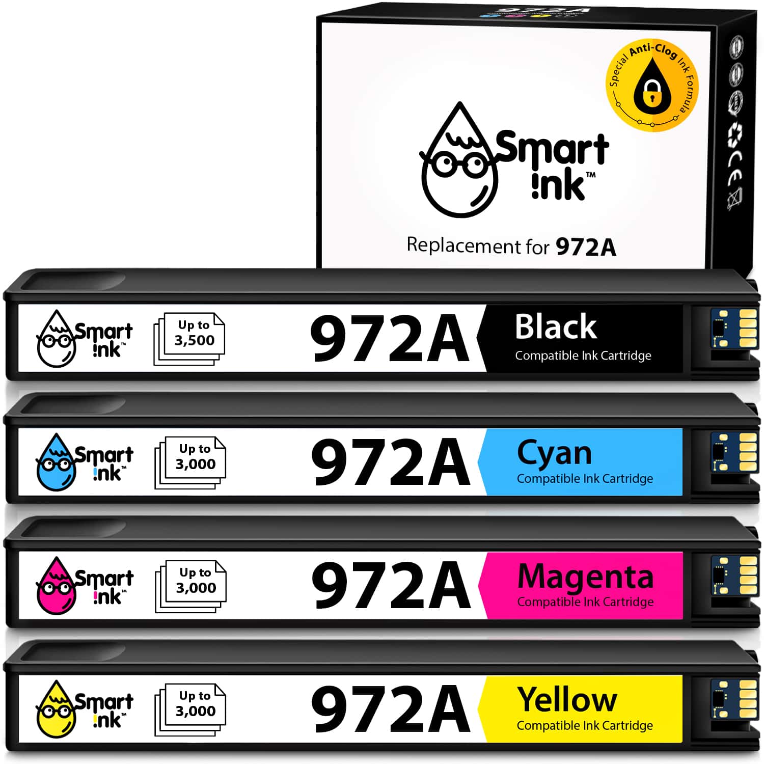 Compatible Ink Cartridge Replacement for HP 972A (4 Combo Pack), Smart Ink