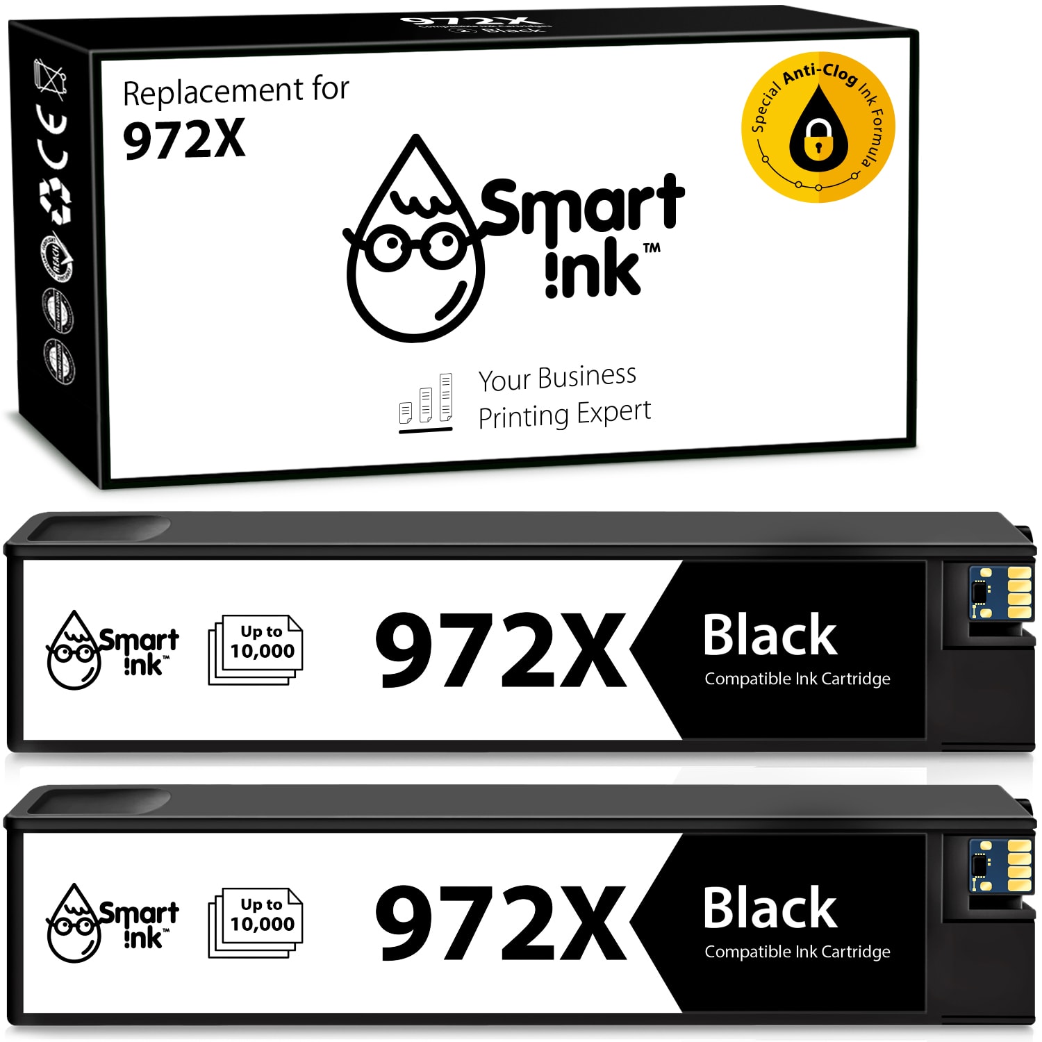 Compatible HP 972X Ink Cartridge Replacement (2 Black), Smart Ink