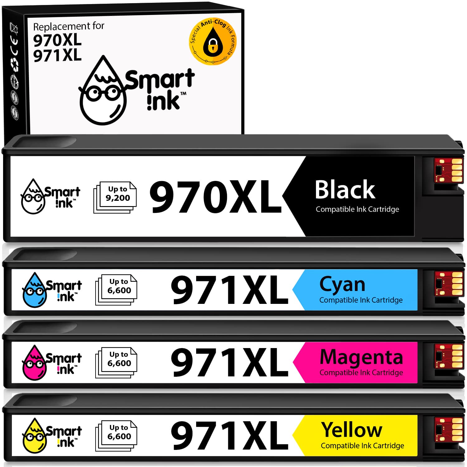 Compatible Ink Cartridge Replacement for HP 970XL 971XL (4 Combo Pack), Smart Ink