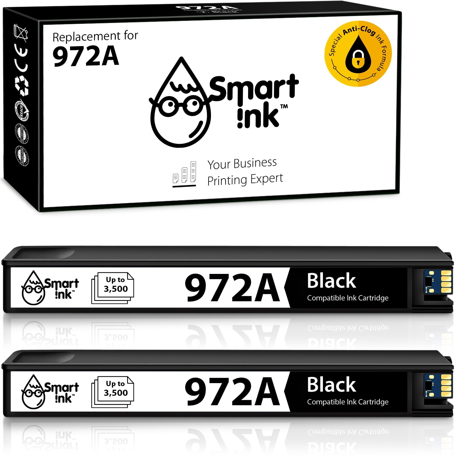 Compatible Ink Cartridge Replacement for HP 972A (2 Black), Smart Ink