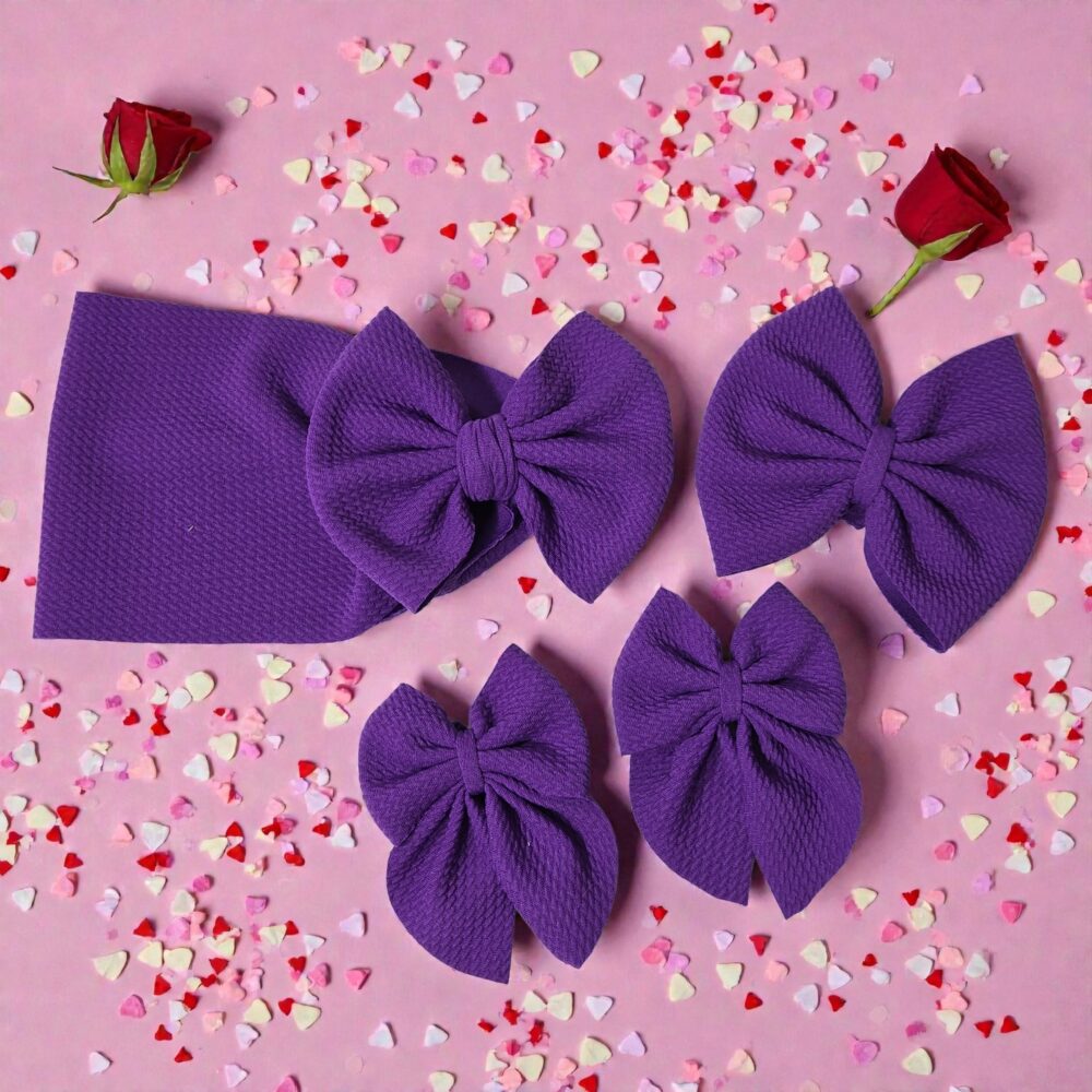 Purple Bow Headband & Hair Bow | Baby Toddler Girls Bow | Handmade Fabric Bow | Newborn Infant Headwrap | Boutique Hair Accessories