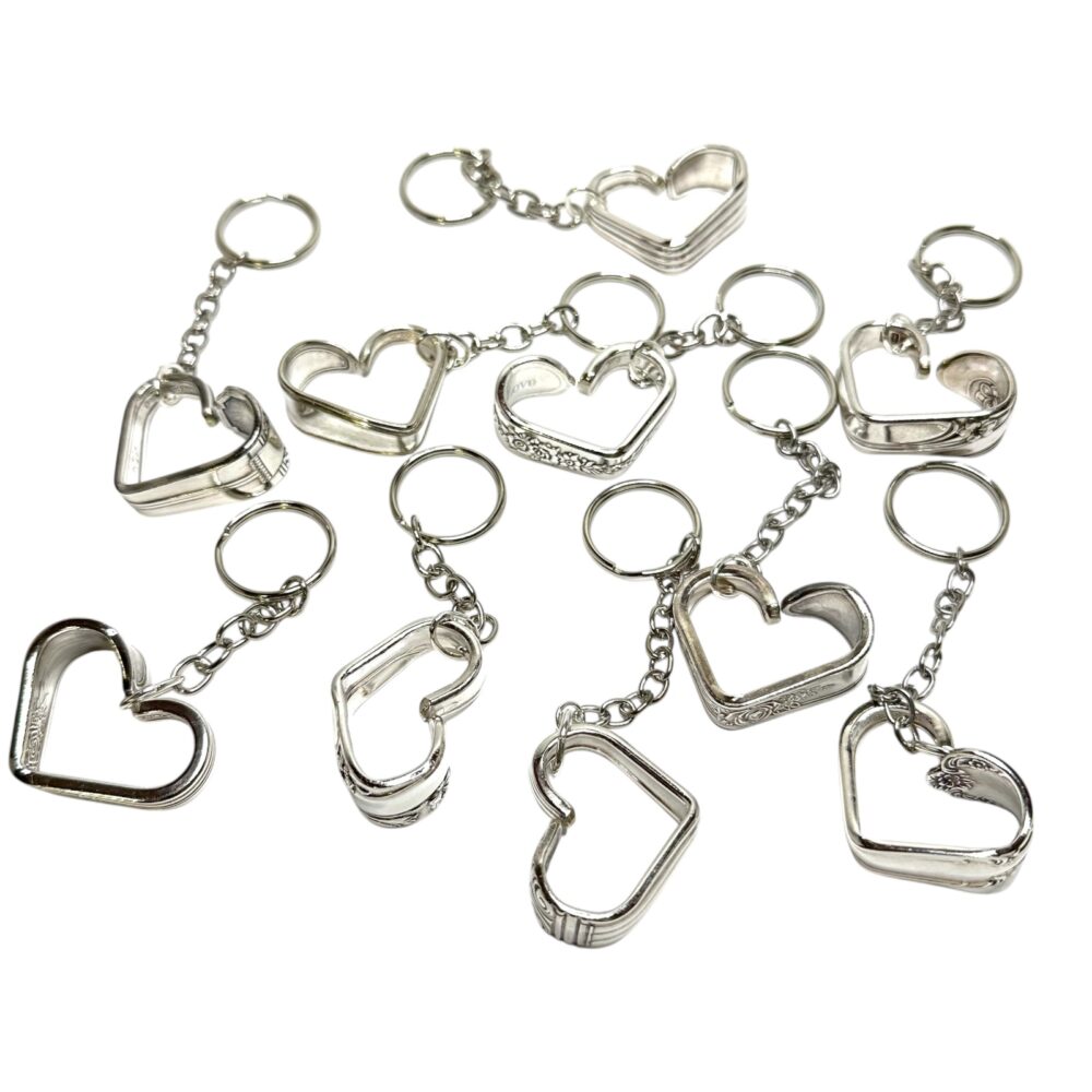 Vintage Silverware Floating Heart Keychain, Purse Charm