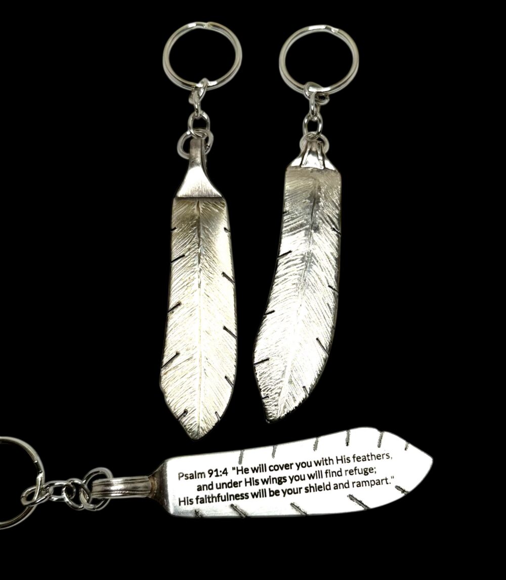 Psalm 91:4 Keychain, Vintage Silverware Purse Charm
